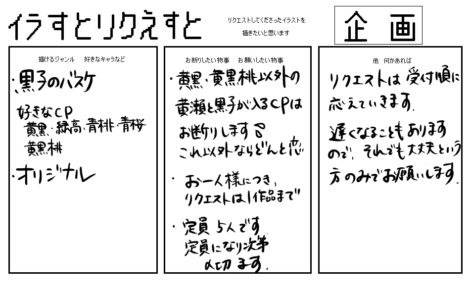そこで、しょぼいですが、イラストリクエストを企画しましたっ