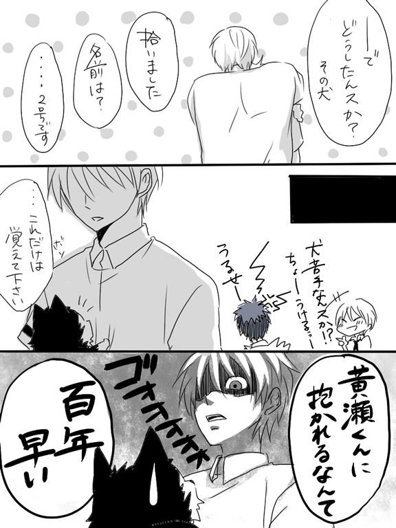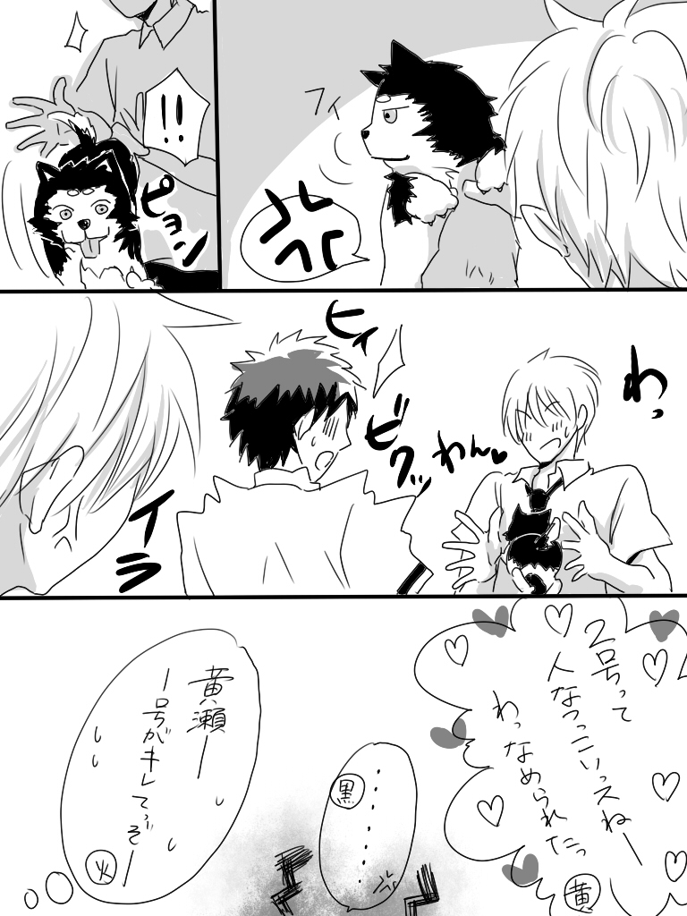 ってか、いっそ、このバージョンも2号が懐いて1号がしっとするやつも、黄瀬が2号に嫉妬するやつも描いちゃえ☆とか考えていたら、いつの間にか1号と2号の黄瀬の取り合いだけになりましたー